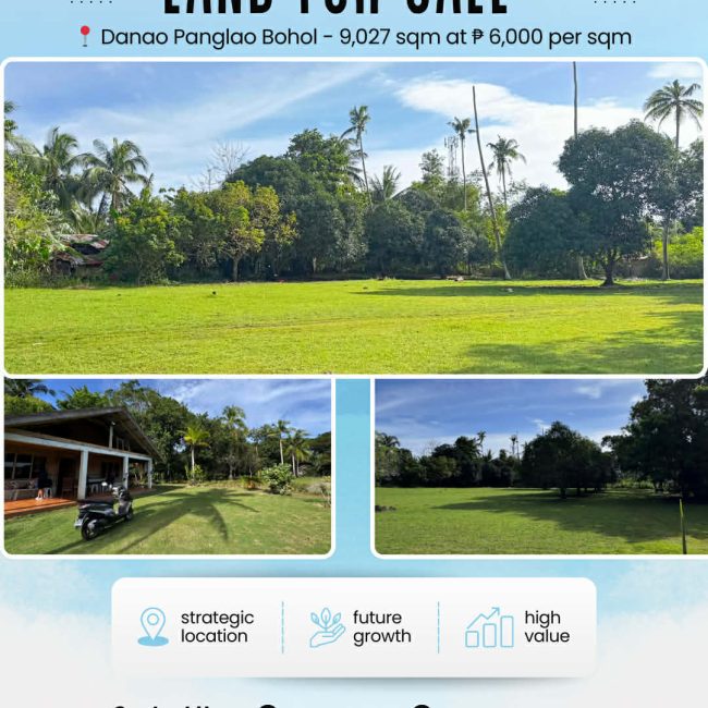 SUBSTANTIAL PROPERTY FOR SALE IN DANAO, PANGLAO, BOHOL. A rare opportunity to acquire a large and strategically located property in Danao, Panglao, Bohol. This 9,027